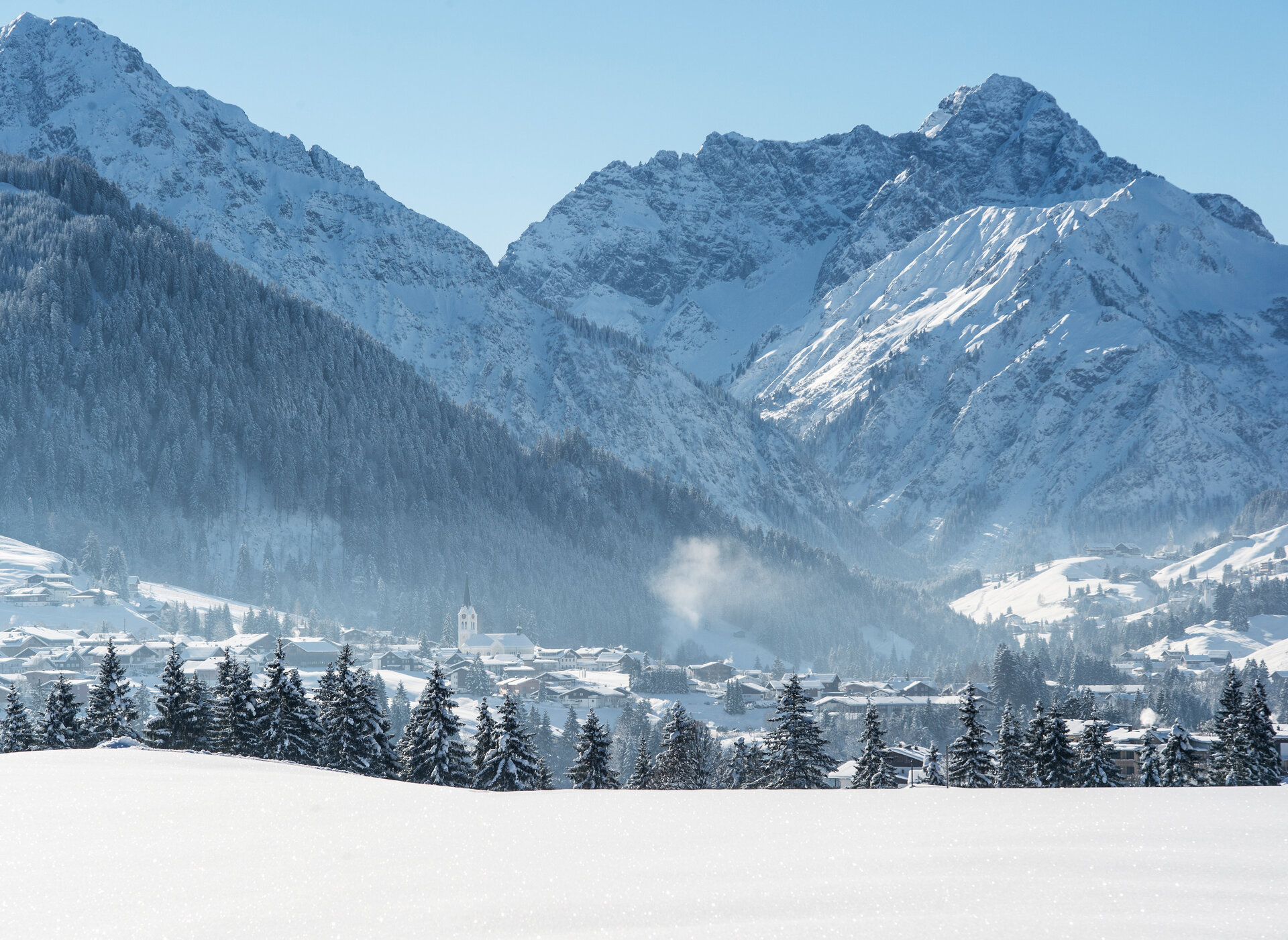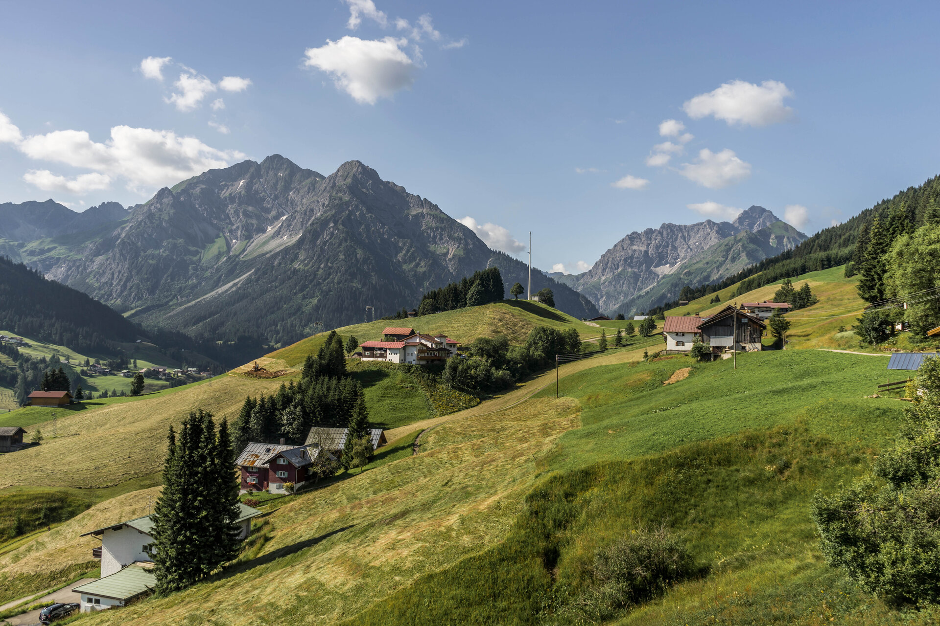 Je weiter man taleinwärts kommt, desto höher und alpiner werden die Gipfel, die sich auftürmen. Mittelberg selbst, lädt Dich auch ein, zur Ruhe zu kommen. Die Begegnungszone im Ortskern sorgt für entschleunigten Verkehr und ein harmonisches Miteinander. Hier teilen sich Fußgänger, Radfahrer und Autos den Raum, was den Ort noch gemütlicher und einladender macht. Ein perfekter Ort zum Verweilen, Flanieren und Restaurants und Cafés zu entdecken. Mit der Walmendingerhornbahn und dem Zafernalift steigst Du Sommer wie Winter aus dem Zentrum in die spektakuläre Bergwelt der Walser Berge auf. Eingebettet in die romantischen Seitentäler Mittelbergs, die noch tiefer in die Bergwelt hinein und hinaufführen. Ein Mix aus Entschleunigung im Dorf und noch mehr Nähe zu den imposanten Bergen.